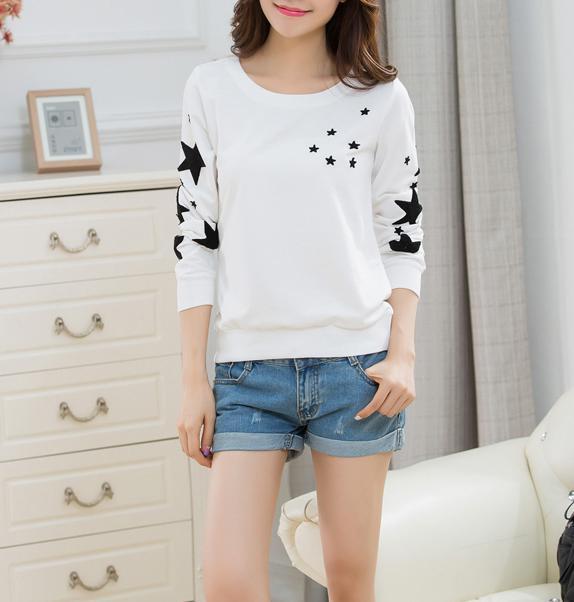 新品 長袖Tシャツ 星柄 トレーナー レディース おしゃれ ホワイト Lサイズ
