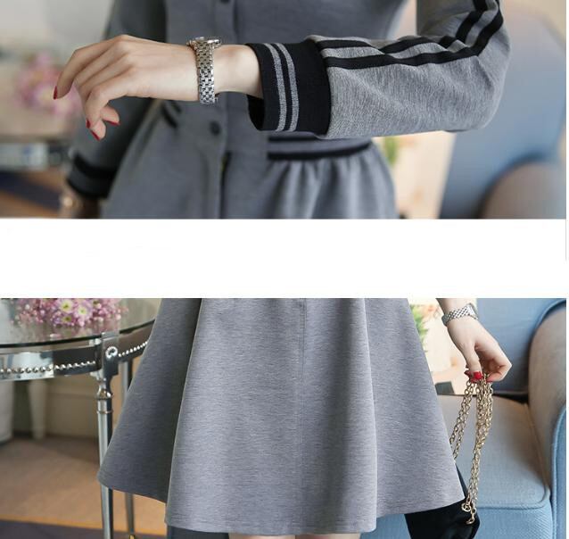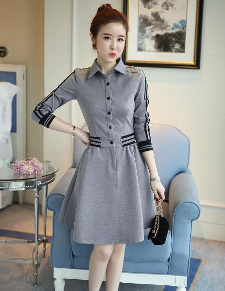 新品 長袖 フレアワンピース グレー レディース おしゃれ Aライン Lサイズ グレー