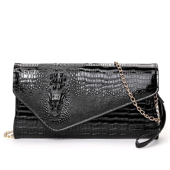 新品 クラッチバッグ レザー クロコ 高級感 レディース おしゃれ ブラック 黒色