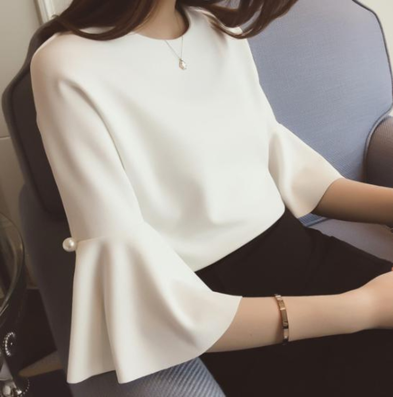 ベルスリーブシャツ ブラウス きれいめ レディース 春夏 おしゃれ ホワイト Lサイズ