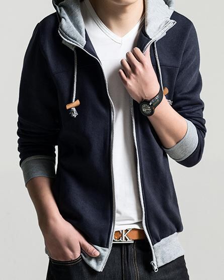 新品 パーカー メンズ ネイビー フルジップ 切り替えフード おしゃれ XLサイズ