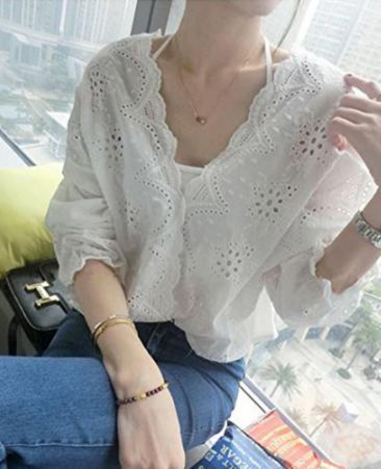 新品 ブラウス ホワイトシャツ Vネック レース トップス レディース 白 フリーサイズ