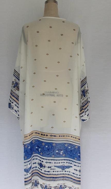 新品ネイティブ柄 エスニック風 ロングガウン 白/青 ロングカーディガン 春夏秋 スカーフ