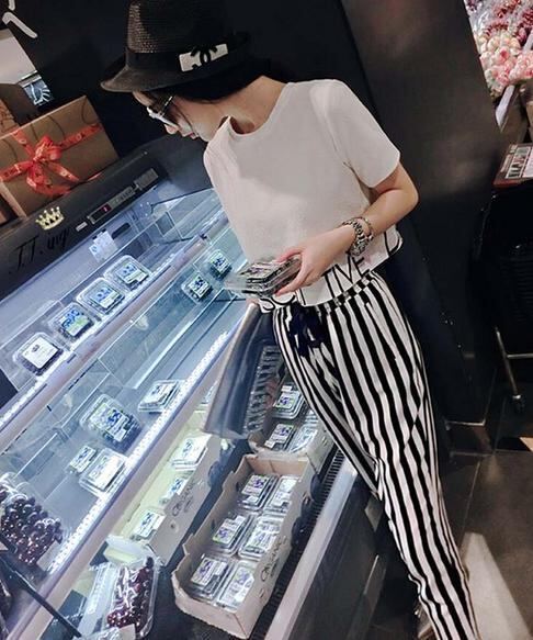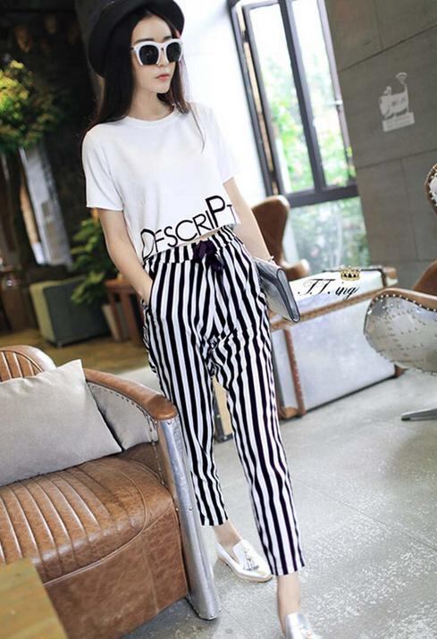 新品 上下セット ストライプ パンツ ロゴT セット レディース ロゴ Tシャツ Lサイズ 白黒 春夏秋 着回し