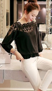 新品レース ブラウス 七分袖 インナー シャツ レディース ブラックMサイズ 夏 フリル デニム、スキニーなどに セクシー 大人
