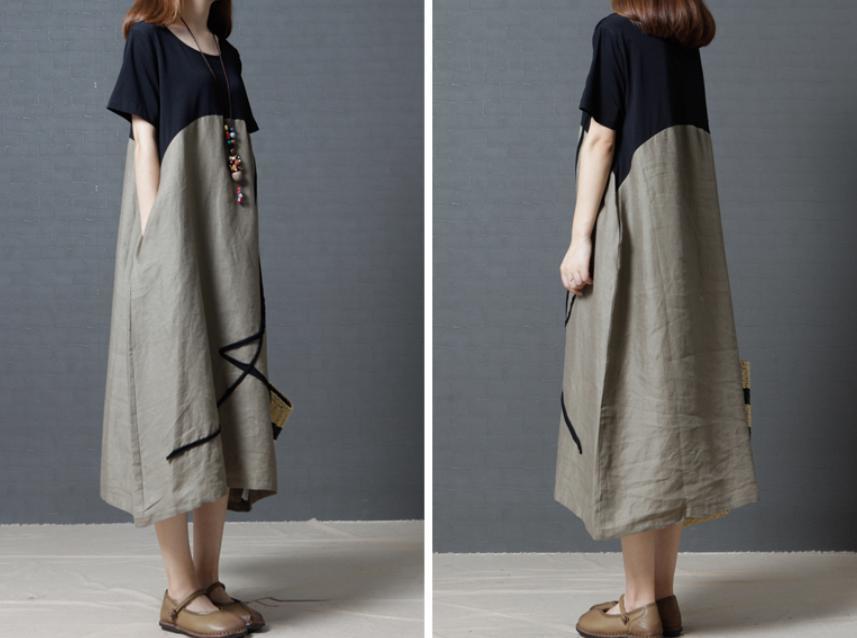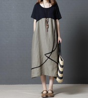 着心地の良い綿麻素材のナチュラルワンピース。ハイウエストでゆったりとしたシルエットの大人可愛いワンピースです☆