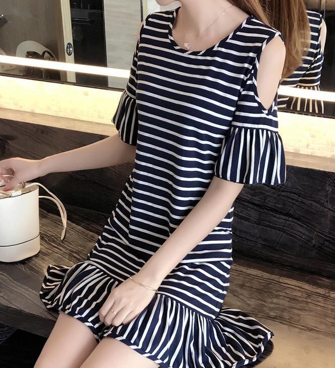 トレンドのボーダー柄のワンピース。
