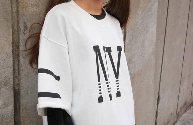 新品 半袖 Tシャツ レディース Mサイズ ホワイト NY ロゴ カジュアル ラウンドネック スキニー、ショートパンツ、ミニスカなどに