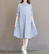 シャツワンピ ブルーとホワイトのストライプカラー