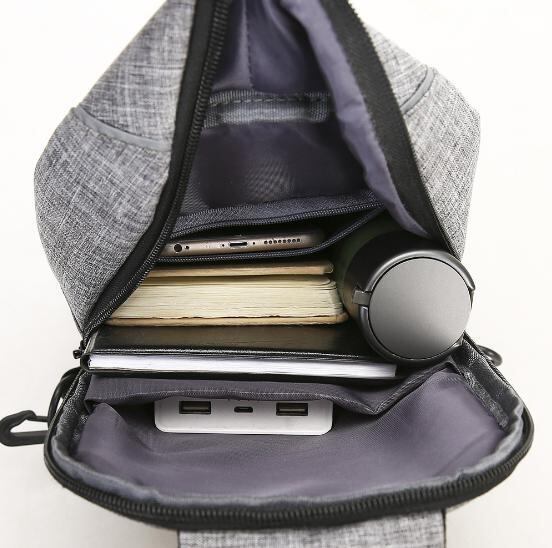 ボディバッグ USBポート付き 斜め掛け グレー ワンショルダーバッグ 胸バッグ 肩掛け 大容量多収納 防水 自転車 軽量 ウォーキング