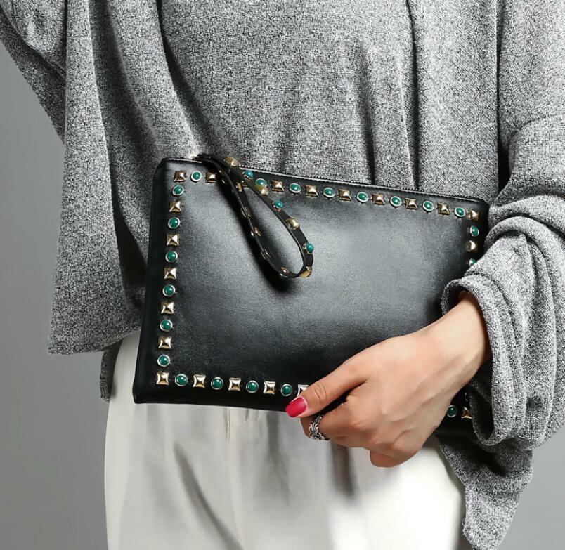 スタイリッシュなフォルムで高級感漂うおしゃれスタッズクラッチバッグです!