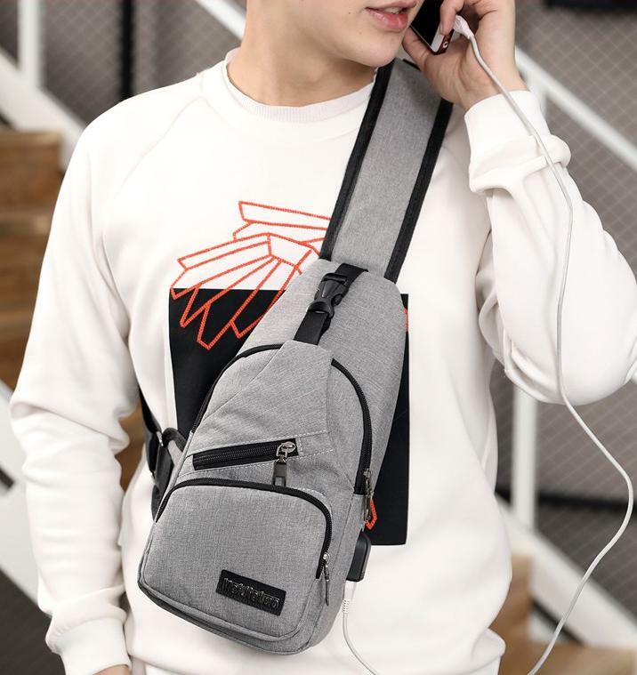 ボディバッグ ボディーバッグ ショルダーバッグ USBポート グレー 鞄 おしゃれ ➇