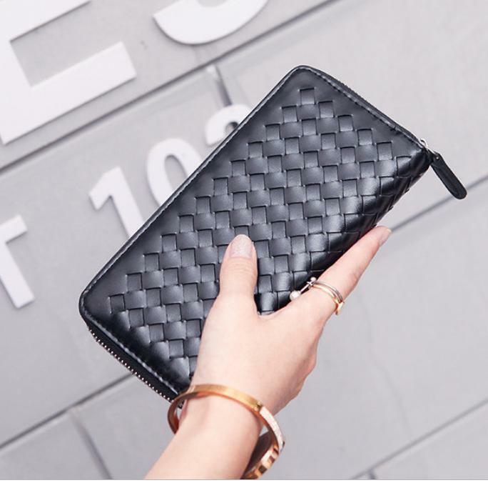 長財布 ラウンドファスナー 財布 小銭入れ コインケース 黒 編み込み 高級感 小物 収納 ⑦