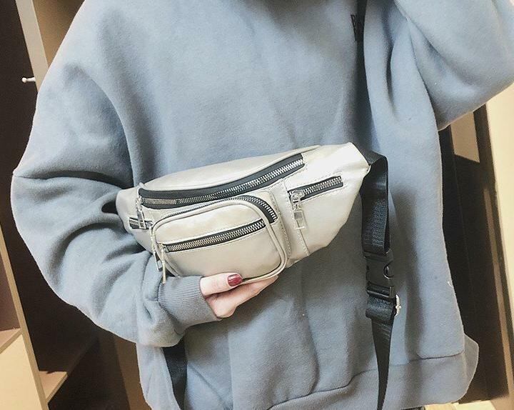 新品 ボディバッグ レディース メンズ シルバー シンプル レザー ウェストポーチ サコッシュ