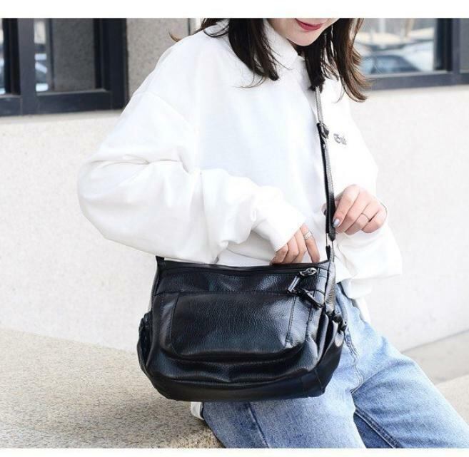 ショルダーバッグ クラッチバッグ レザー 黒 シンプル 大容量 ②
