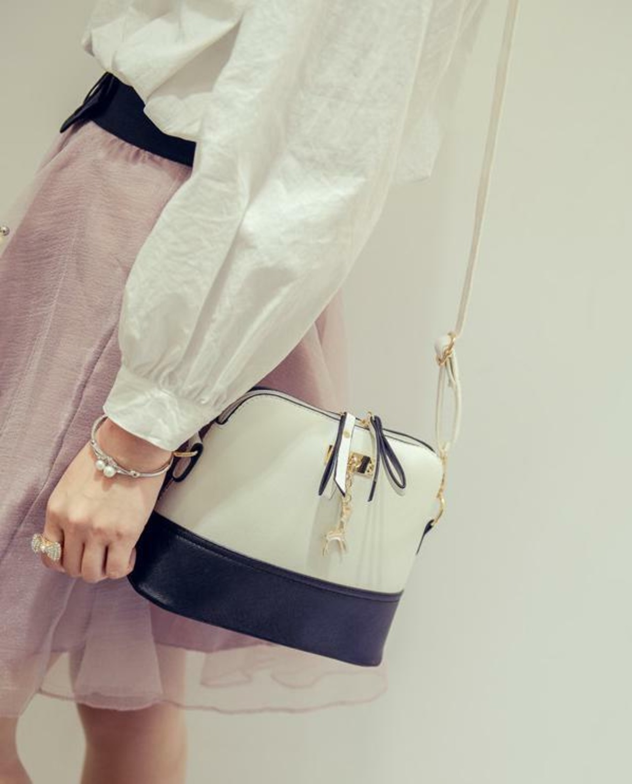 ショルダーバッグ メッセンジャーバッグ 斜め掛け レディース バンビ 白黒