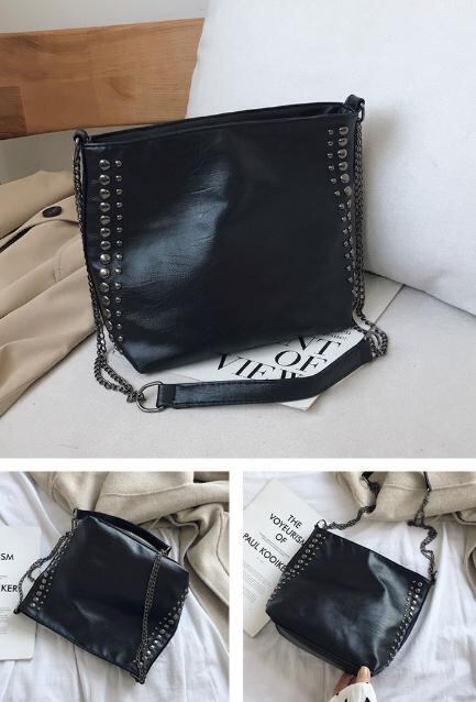 ショルダーバッグ 手提げバッグ 斜め掛け レディース ブラック 高品質 スタッズ レザー バッグ チェーン ④ ⑫