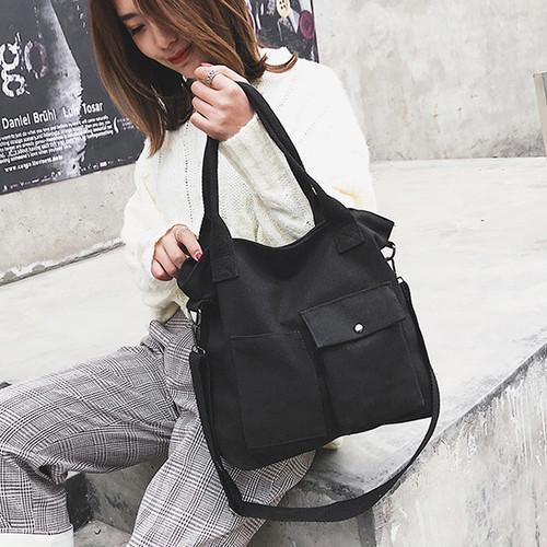 ショルダーバッグ トートバッグ メッセンジャーバッグ キャンバス 黒色