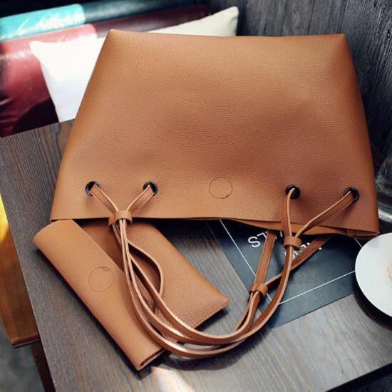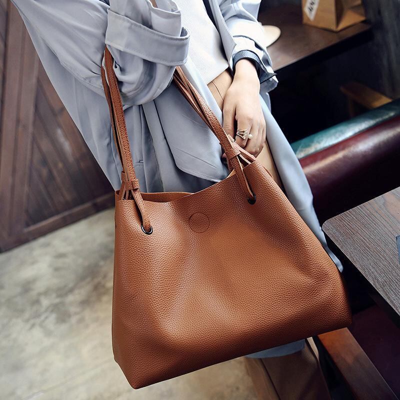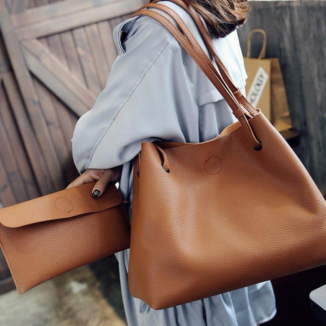 トートバッグ ハンドバッグ 2way ミニバッグ付き 2点セット 茶