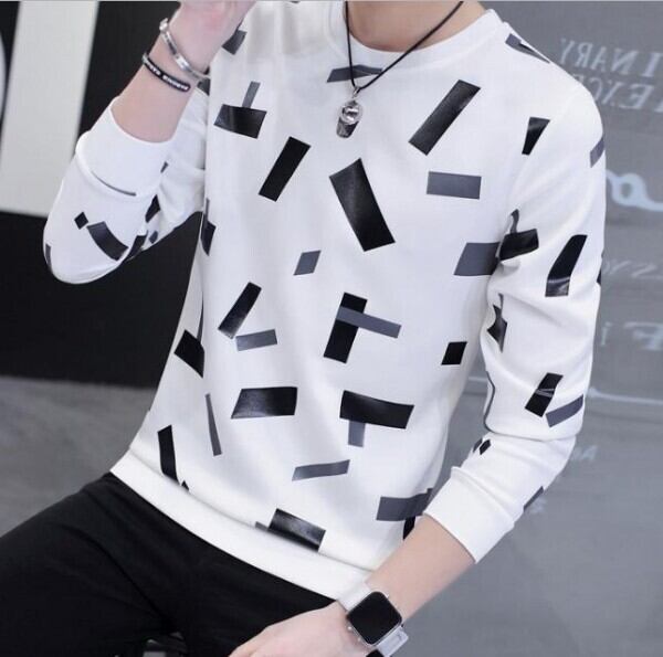 Tシャツ トレーナー トップス ロンT 長袖 白 ホワイト XL おしゃれ柄