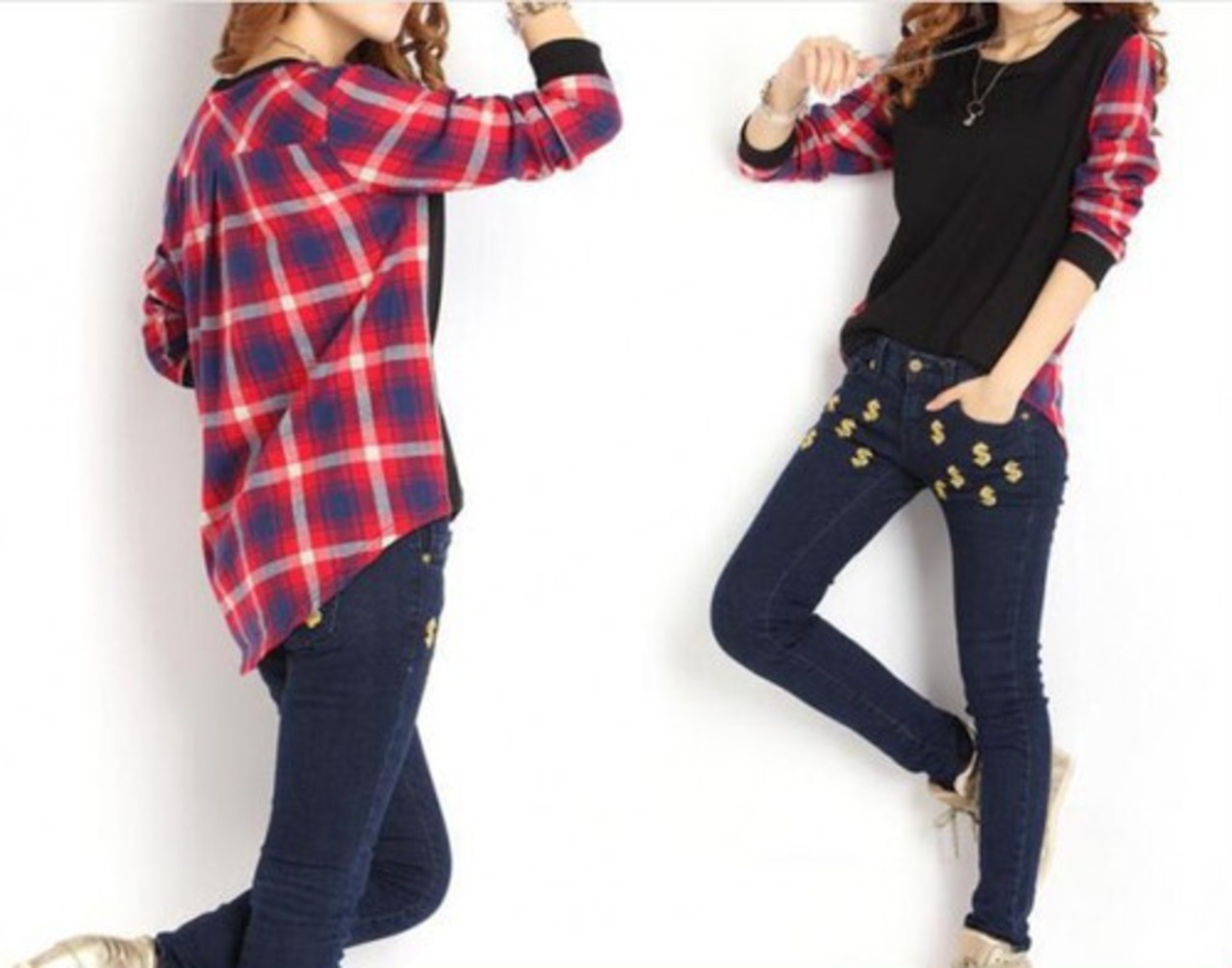 長袖 Tシャツ トップス カットソー ロンT チェック柄 XLサイズ