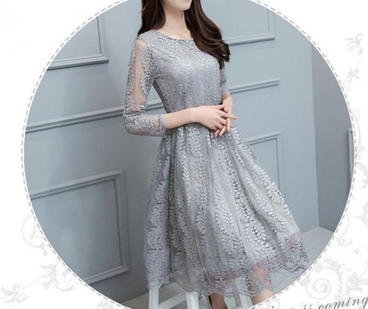新品 ドレスワンピース 七分袖 レース 結婚式 パーティー スカート レディース Mサイズ グレー バッグやブーツなどに s426