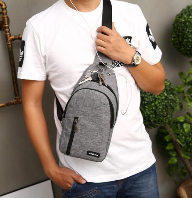 ボディバッグ ボディーバッグ ショルダーバッグ グレー 鞄 イヤホン穴