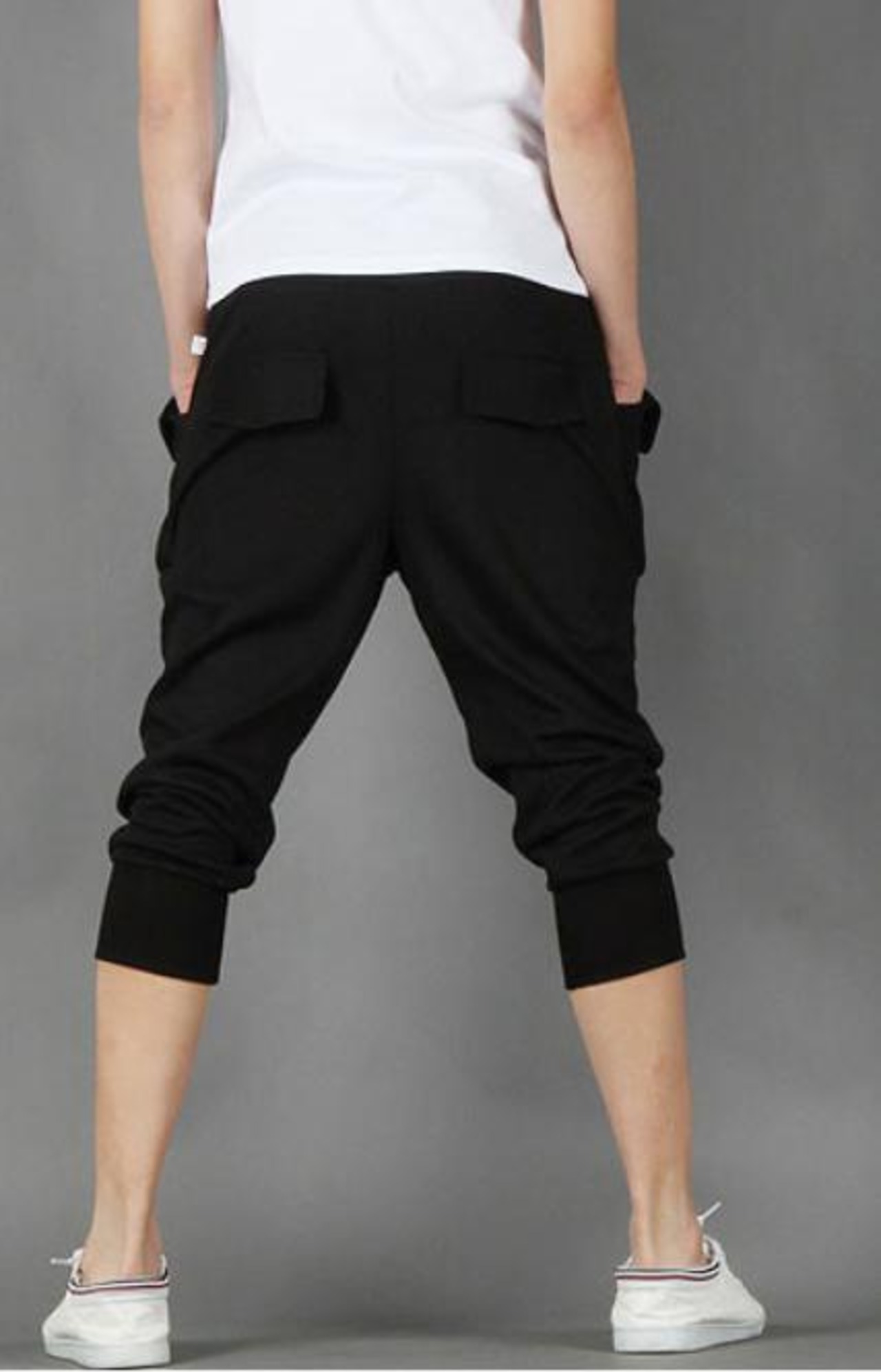スウェット パンツ 7分丈 ボタン付き サルエルパンツ 部屋着 黒 M