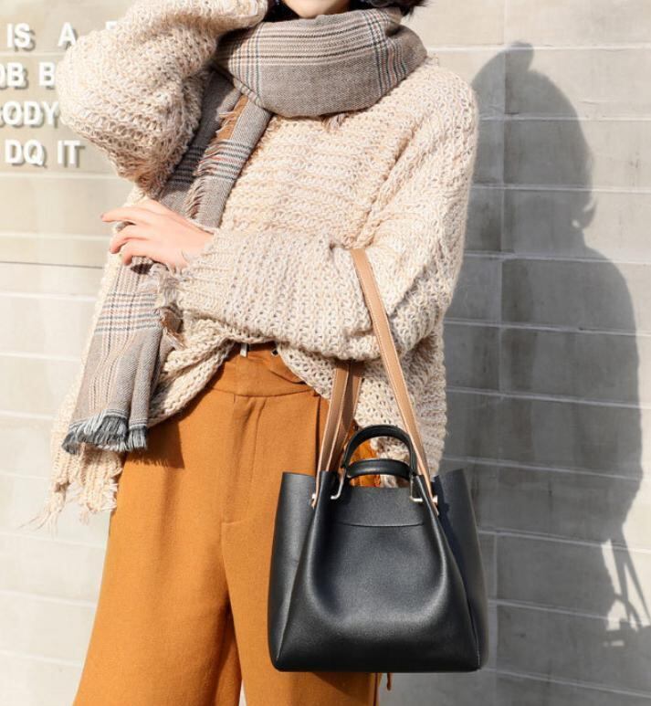 トートバッグ 手提げバッグ ショルダーバッグ レザー 黒ベージュ 鞄 ⑤