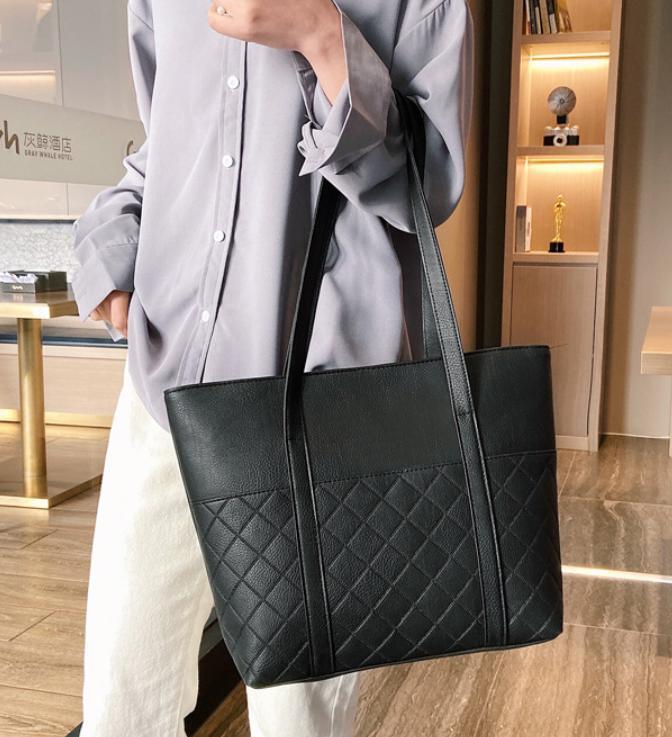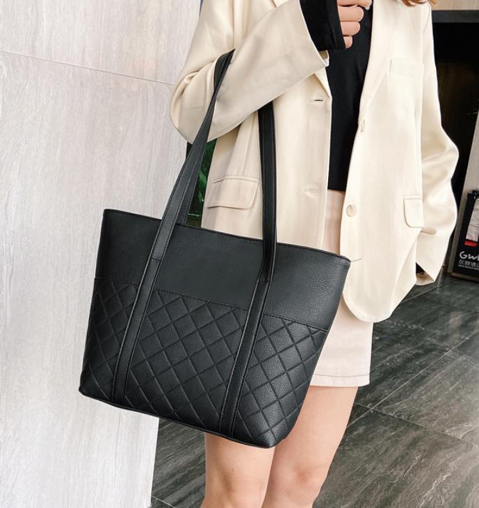 トートバッグ ショルダーバッグ レディース レザー A4サイズ 格子柄 ブラック ③