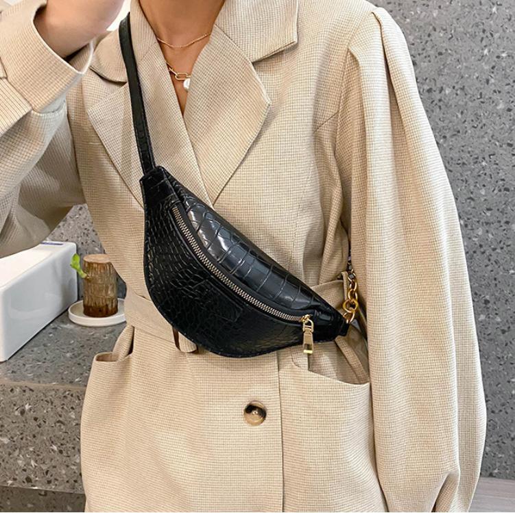 クロコデザインのおしゃれなゴールドチェーン付きボディバッグです