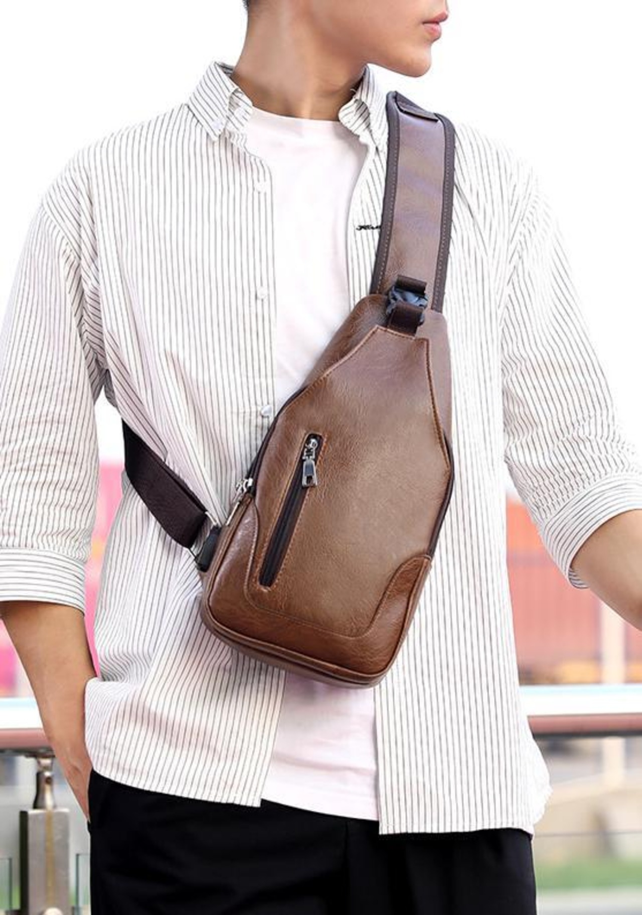 ボディバッグ ボディーバッグ ショルダーバッグ USBポート レザー ブラウン 茶 イヤホン穴
