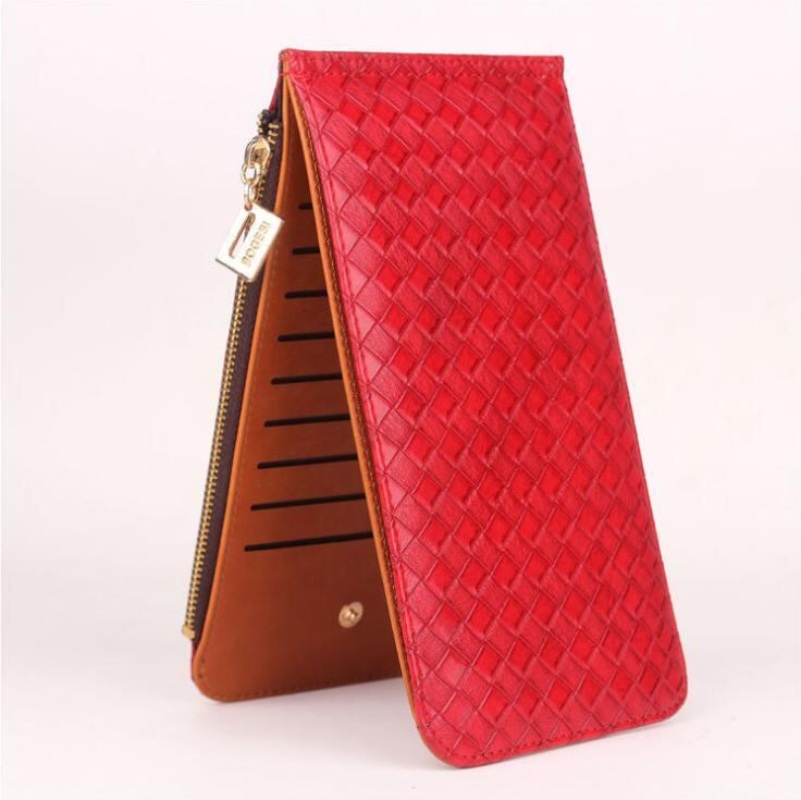 二つ折り財布 長財布 小銭入れ コインケース カードケース メンズ ビジネス 赤 レッド 編み込み 茶②