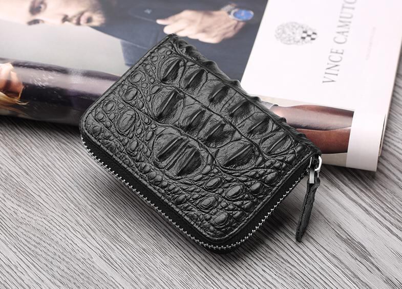 本革 カードケース お札入れ クロコ柄 メンズ ビジネス 黒 シンプル レザー ラウンドファスナー