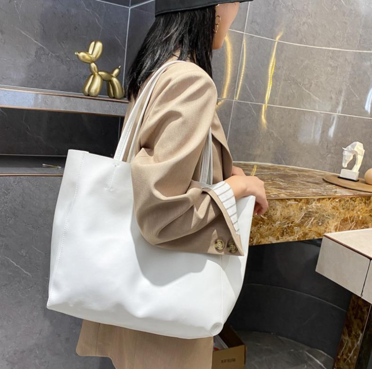 トートバッグ ショルダーバッグ レディース シンプル 白 ホワイト 鞄 レザー 手提げ 大きめサイズ
