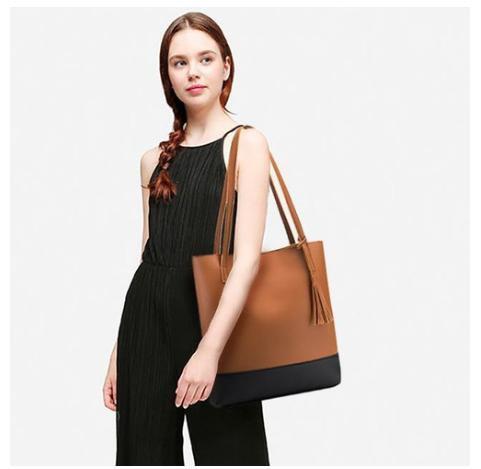 トートバッグ レディースバッグ 鞄 カバン 大きめ 大容量 フリンジ 茶黒 ①