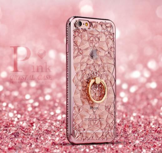 iphone7 おしゃれなクリスタルスマホケース オールピンク リング付き