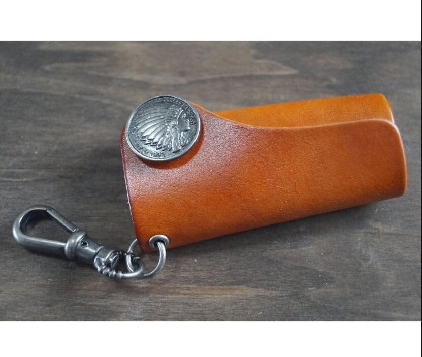 レザー 牛本革キーケース メンズ・レディース キャメルブラウン ビンテージ