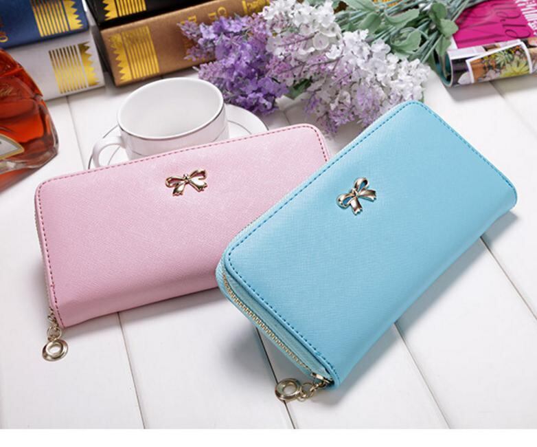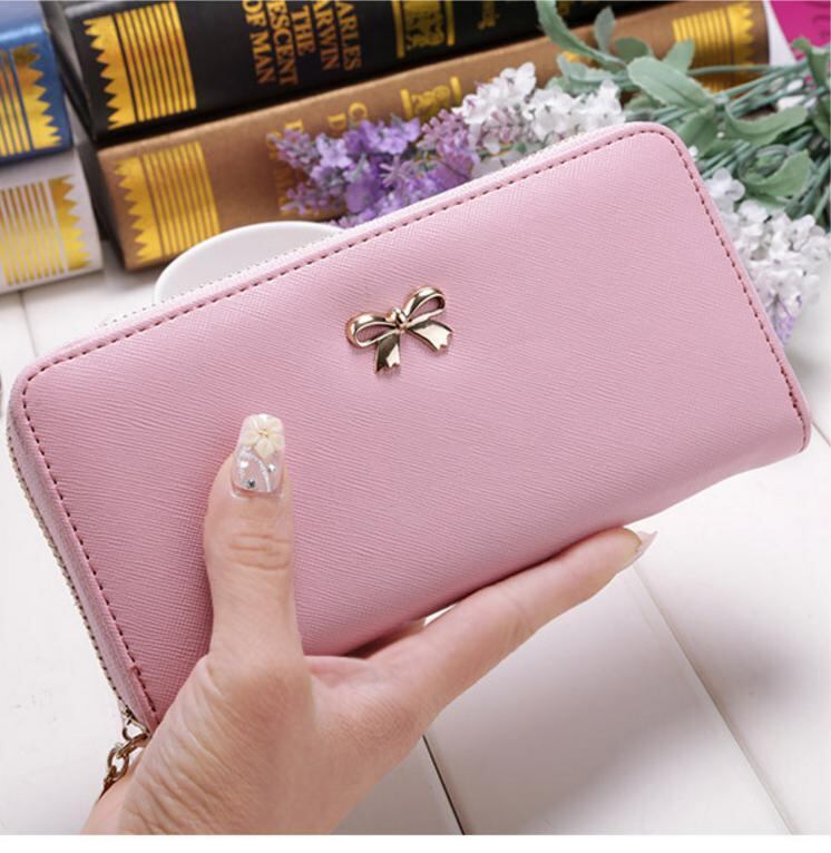 2017年 長財布 リボン レディース ラウンドファスナー ピンク色 小銭入れ コインケース