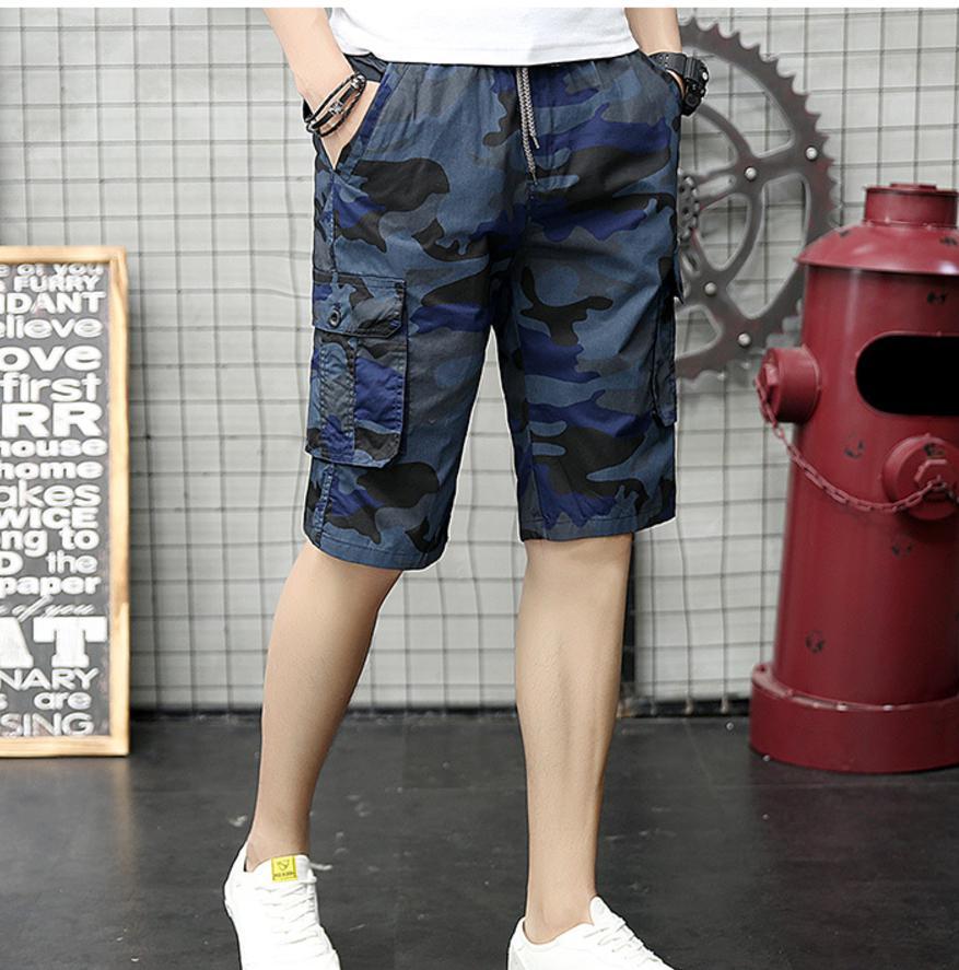 短パン ショートパンツ ハーフ メンズ 夏ファッション 迷彩 ブルー 青 カモフラ Mサイズ