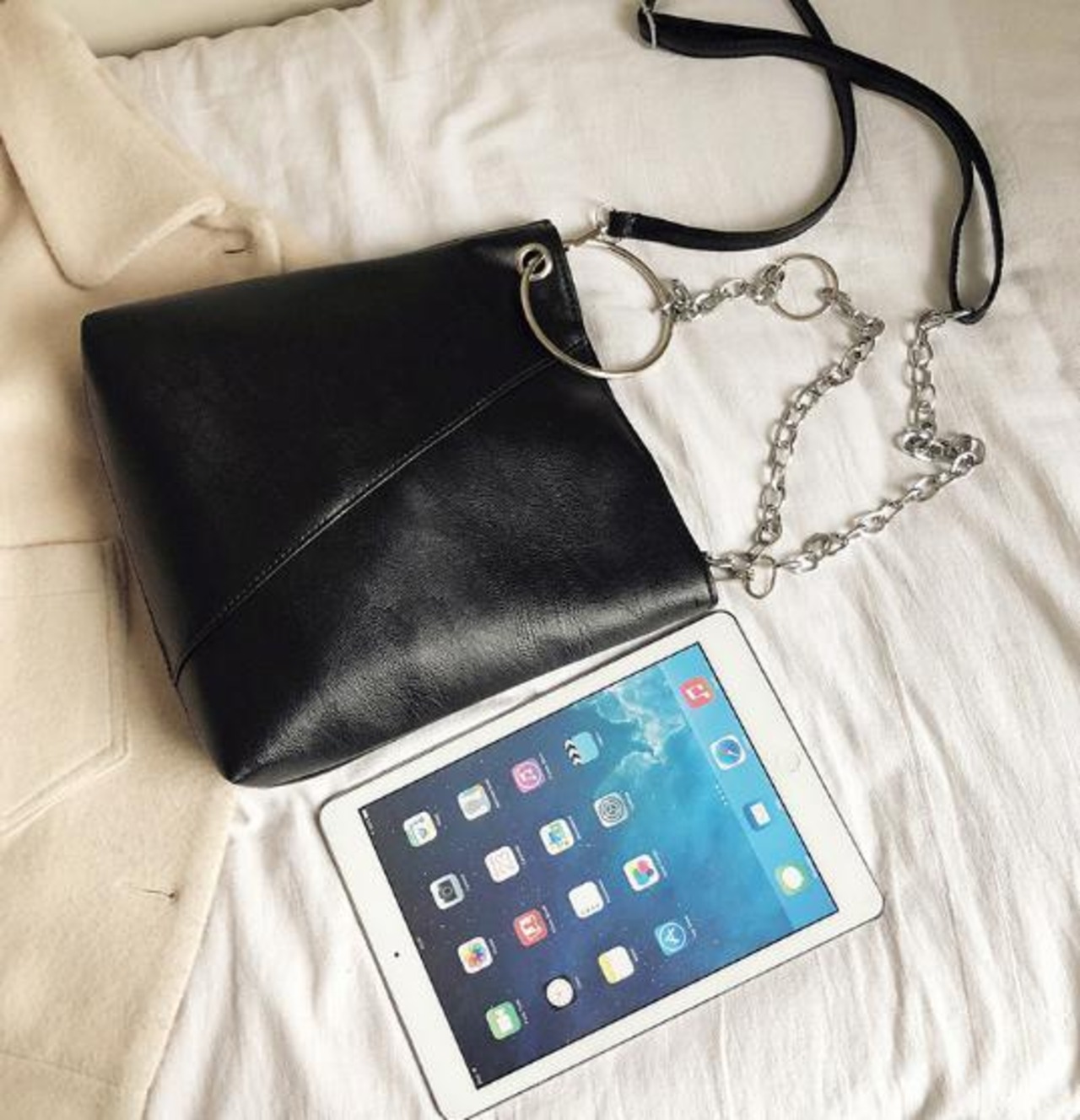 リングチェーン付きのおしゃれショルダーバッグです。