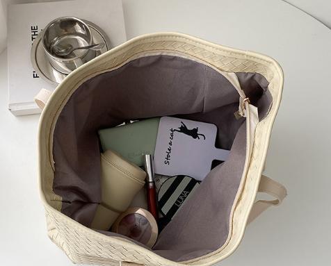 A4ファイルやノート、タブレット等がすっぽり入るおしゃれな編み込みトートバッグです。