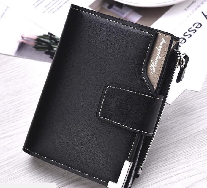 高品質レザー 二つ折り財布 小銭入れ コインケース カード名刺入れ メンズ ブラック
