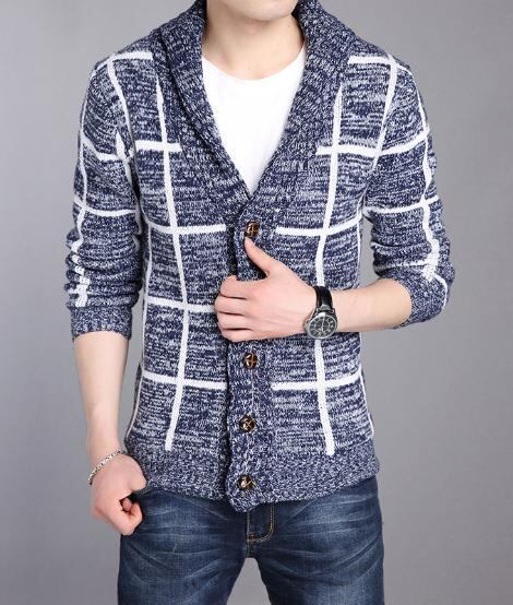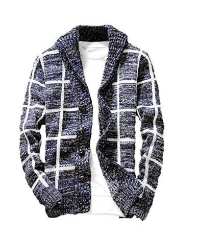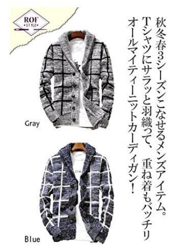 新品 カーディガン ニット セーター メンズ カジュアル Lサイズ ブルー 格子柄